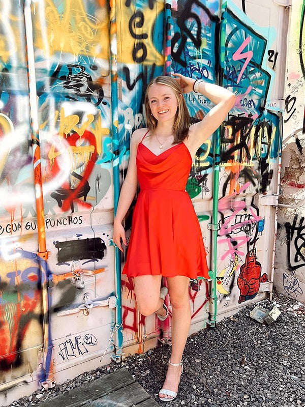 A-Line/Princess Satin Chiffon Ruched Spaghetti Straps Sleeveless Short/Mini Homecoming Dress