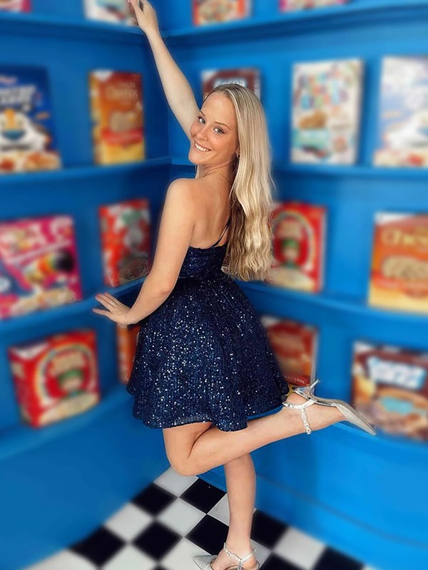 A-Line/Princess Sequins Ruffles One-Shoulder Sleeveless Short/Mini Homecoming Dress
