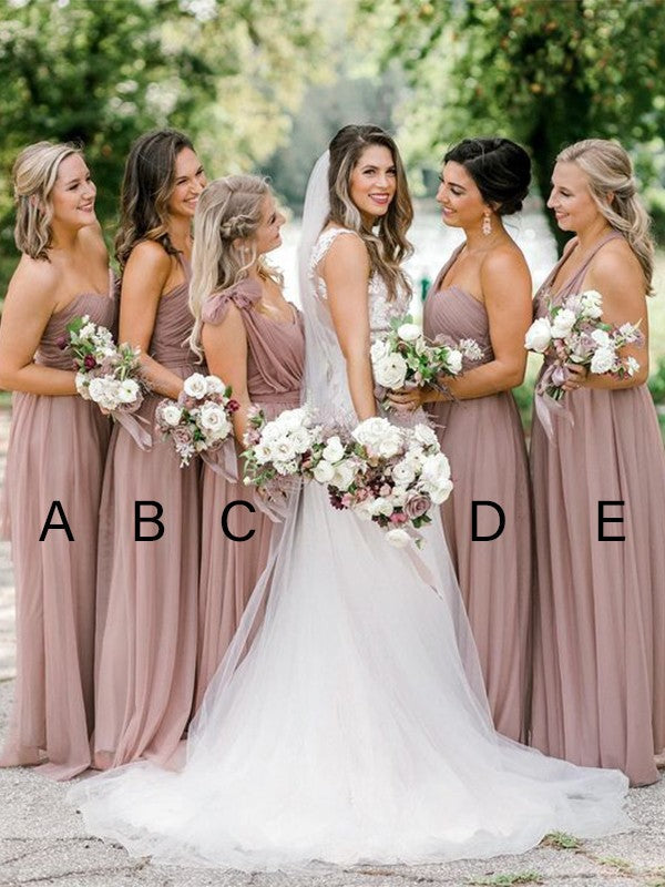 A-Line/Princess Tulle Ruffles Straps Sleeveless Floor-Length Bridesmaid Dresses