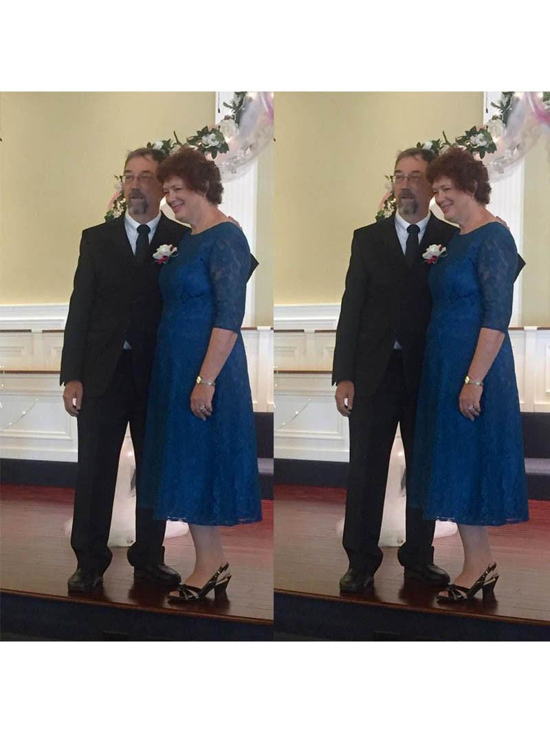 A-Line Scoop 1/2 Sleeves With Lace Tea-Length Lace Mother of the Bride Dress