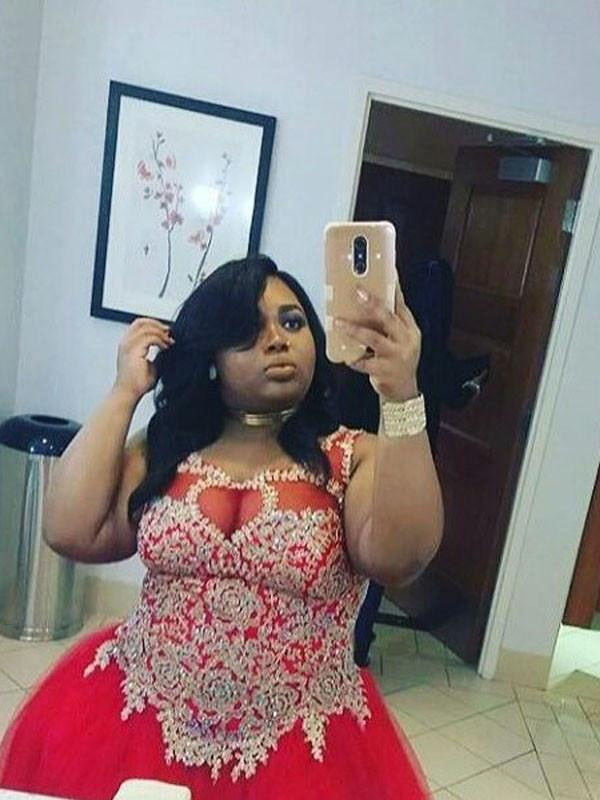A-Line Sheer Neck Sleeveless With Applique Floor-Length Tulle Plus Size Prom Dress