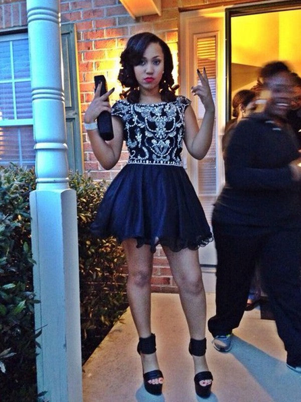 A-Line Tulle Scoop Sleeveless Short/Mini With Beading Homecoming Dress