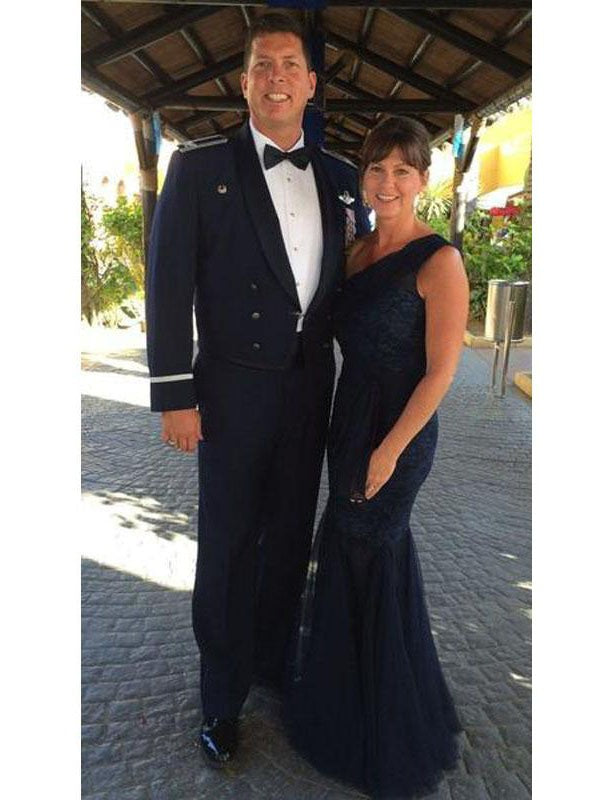 Mermaid One-Shoulder Sleeveless With Lace Floor-Length Tulle Mother of the Bride Dress