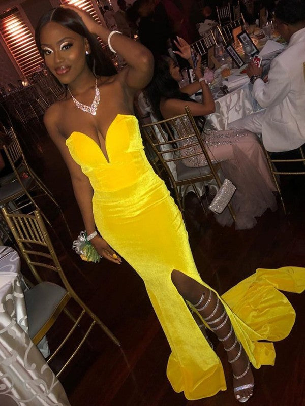 Modern Mood Style Sheath Velvet Ruched Sweetheart Sleeveless Sweep/Brush Train Prom Dress