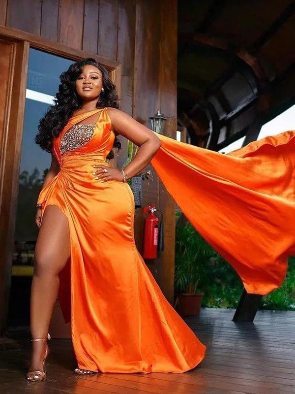 Plus Size A-Line/Princess Silk like Satin Halter Sleeveless Sweep/Brush Train Prom Dress