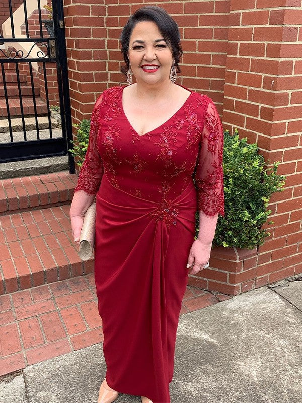 Sheath/Column Elastic Woven Satin Applique V-neck Floor-Length Mother of the Bride Dress