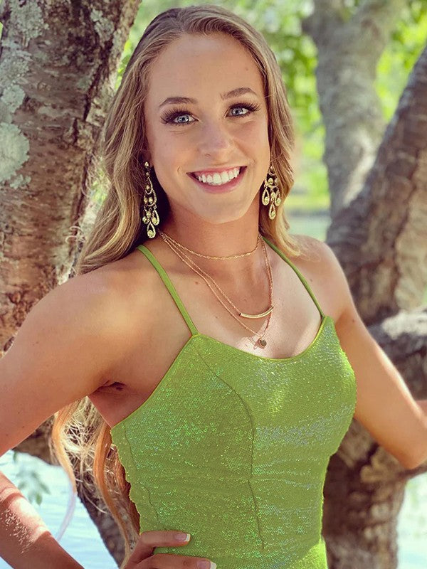 Sheath/Column Sequins Spaghetti Straps Sleeveless Sweep/Brush Train Prom Dress