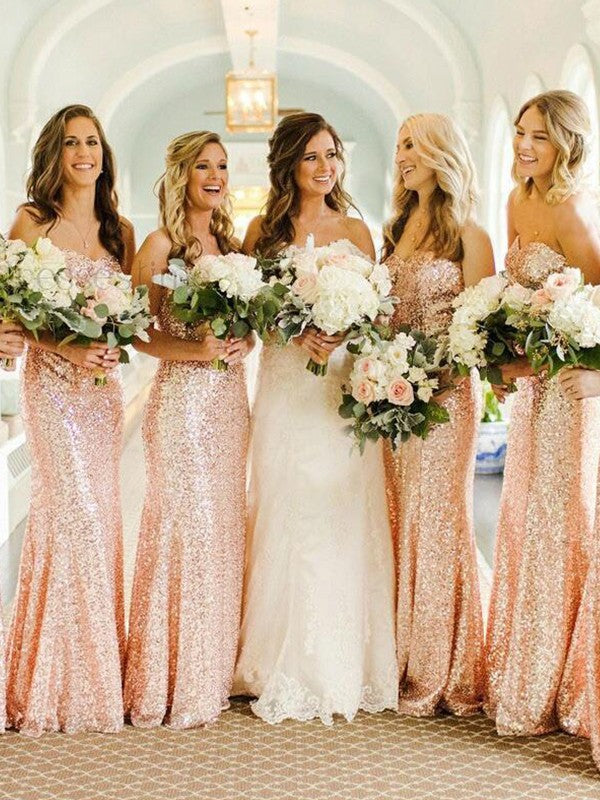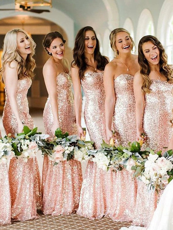Sheath/Column Sequins Sweetheart Sleeveless Sweep/Brush Train Bridesmaid Dresses
