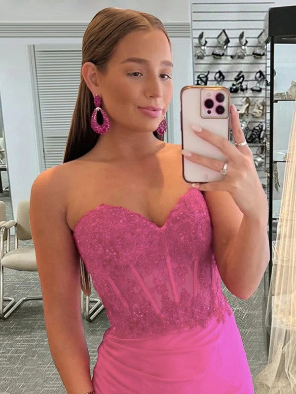 Sheath/Column Stretch Crepe Applique Sweetheart Sleeveless Sweep/Brush Train Corset Prom Dress