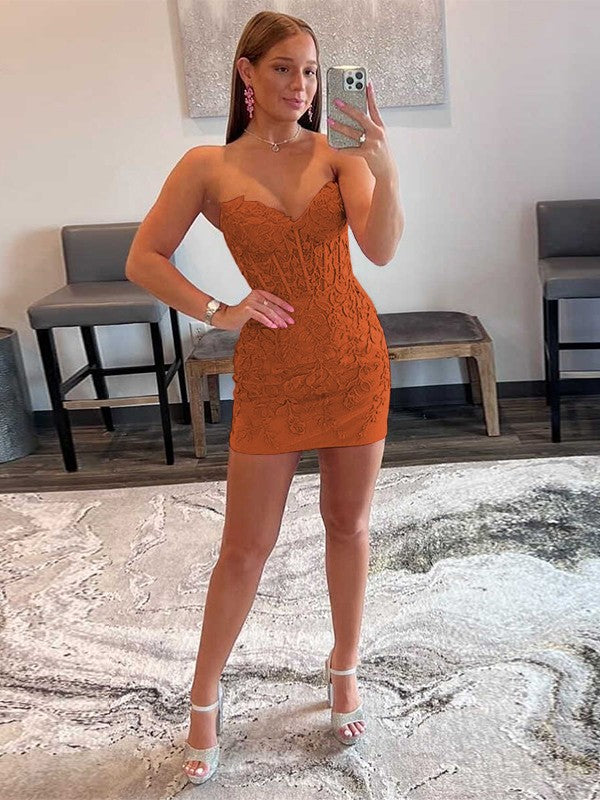 Sheath/Column Tulle Applique Sweetheart Sleeveless Short/Mini Prom Dress