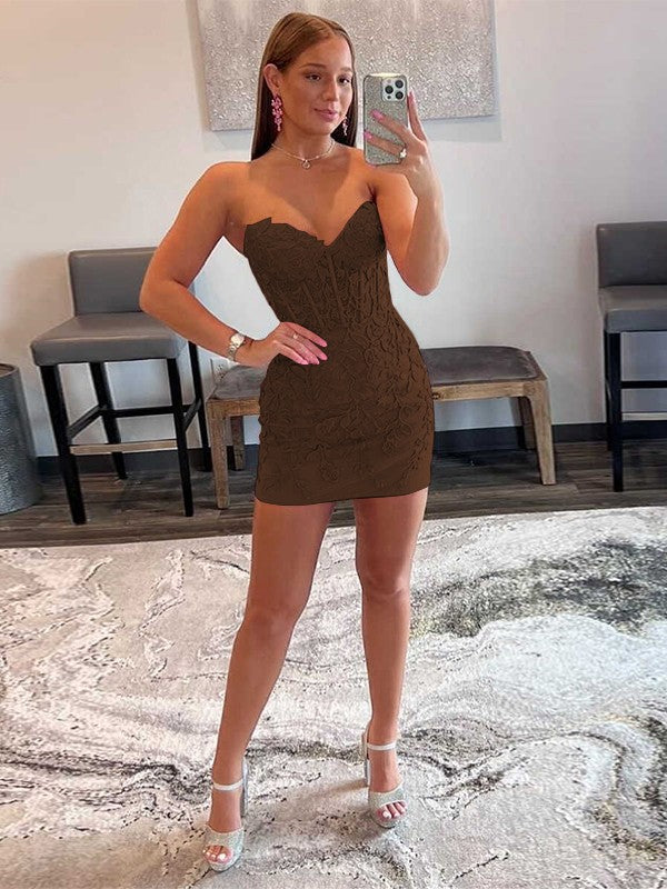 Sheath/Column Tulle Applique Sweetheart Sleeveless Short/Mini Homecoming Dress